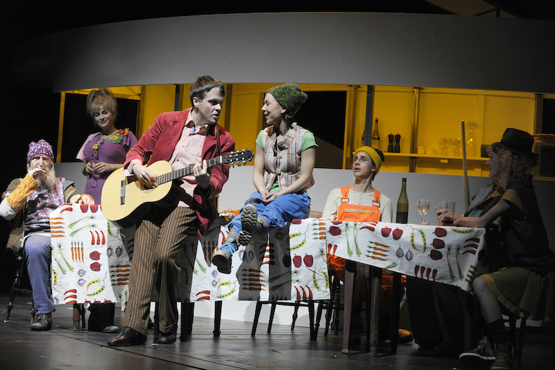 Große Leichtigkeit erfordert manchmal große Disziplin. Das lernt man bei »Momo« am Düsseldorfer Schauspielhaus. Regisseur Rüdiger Pape nutzt die Bühne (Flavia Schwedler) wie ein Karussell – mit dem Unterschied, dass hier bei jeder Runde etwas Neues erscheint. Der Effekt ist gerade am Anfang beeindruckend. Da öffnet Nina, die Wirtin, ihre Trattoria, bei der nächsten Drehung sind die Tische schon gedeckt. Fusi, der Barbier, begrüßt einen Kunden, Drehung, dann sitzt er mit Rasierschaum im Gesicht auf dem Stuhl. Zwischendurch sausen Figuren auf Fahrrädern durchs Bild, Passanten führen Hunde aus, und der Dorftrunkenbold torkelt einher. Die Geschäftigkeit der Piazza ist wunderbar eingefangen. Das zentrale Motiv von »Momo« ebenso – auf den zweiten Blick ergibt das Bühnenbild den unteren Teil einer Sanduhr.